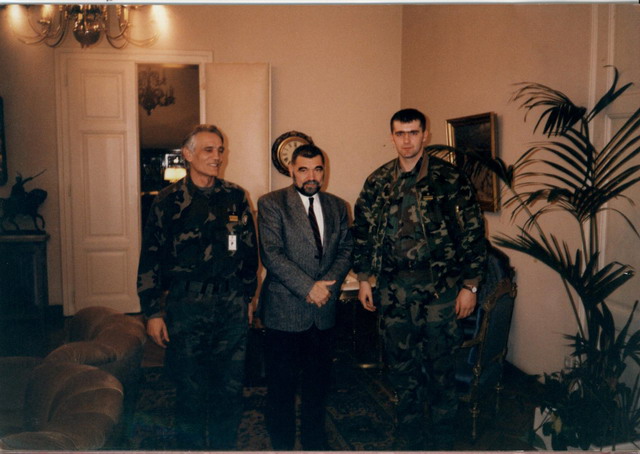 General Božo Budimir, bojnik Mirko Ljubičić i Stjepan Mesić u kabinetu predsjednika Sabora RH