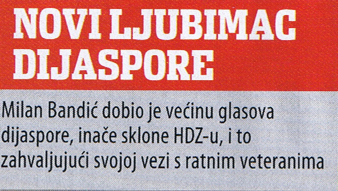 Drugi veliki neuspjeh zbog loše logistike, koji je Hebranga faktički stajao i izbornog poraza, HDZ je doživio u dijaspori. Gotovo polovinu glasova tamošnjih birača, inače tradicionalno odanih HDZ-u, ovaj put je osvojio Milan Bandić. Malo je poznato da je to posljedica višegodišnjeg rada ratnih veterana koje je Bandić zaposlio u Poglavarstvu grada Zagreba i Holdingu.