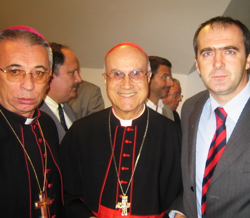 Nadbiskup Ivan Devčić, kardinal Tarcisio Bertone i Mirko Ljubičić